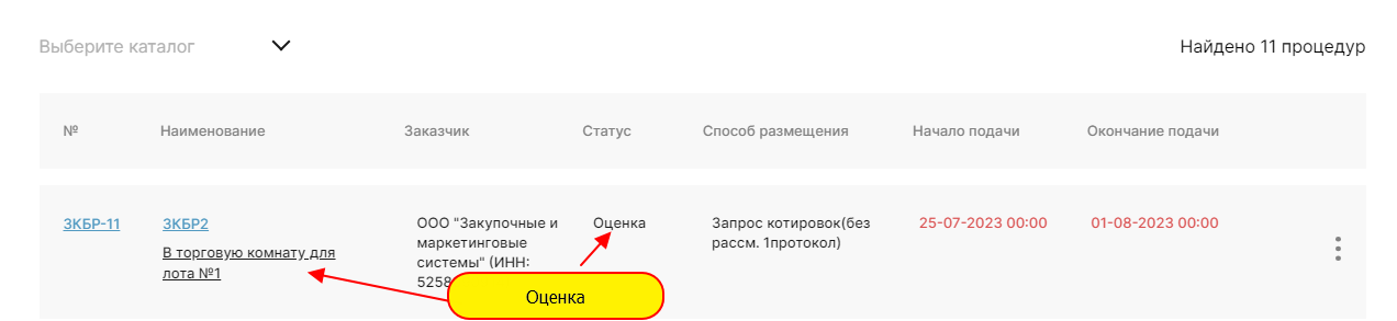 Для того что бы перейти к оценке заявок нужно