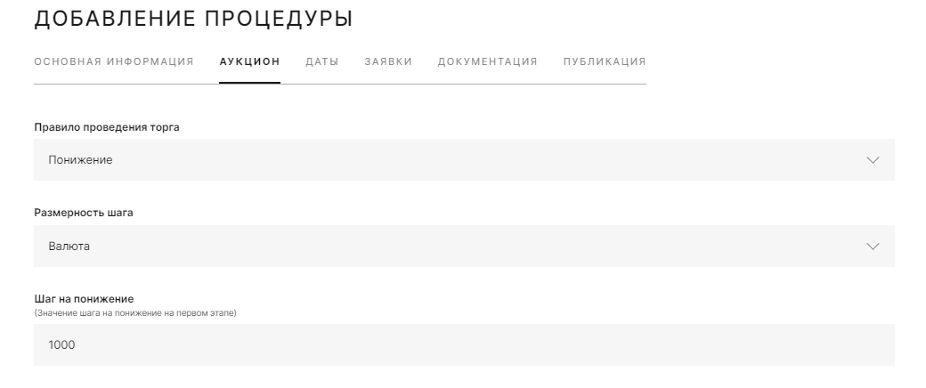 Параметры второго этапа, аукцион