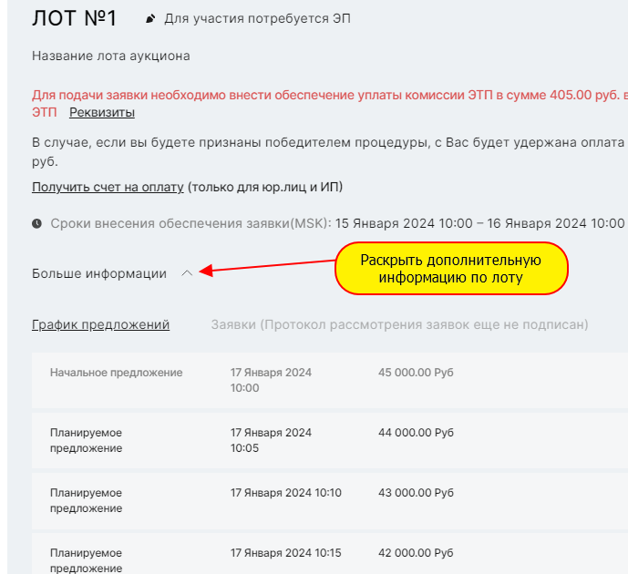 определяется по каждому лоту отдельно) :