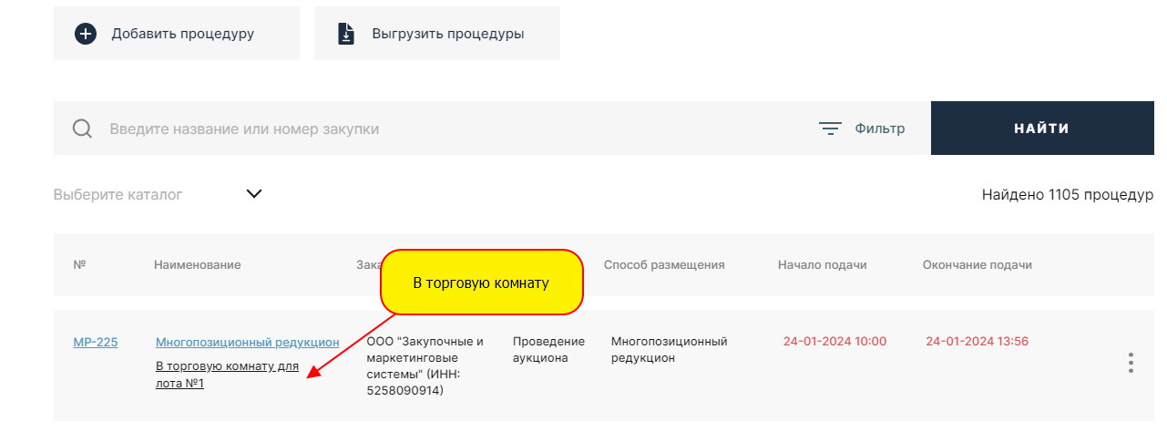 раздела «Мои процедуры» , по ссылке на процедуре :
