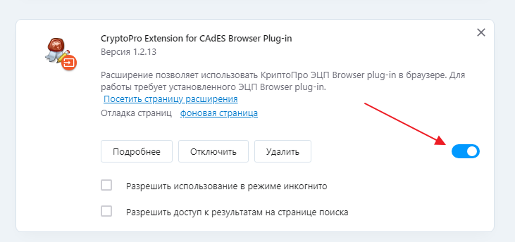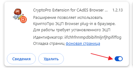 Обратите внимание ! при первом запуске страницы в браузере используемый на странице Plug-in блокируется , для работы страницы необходимо разрешить работу Plug-in После разрешения работы Plug-in , в поле Добавить узел пишется адрес площадки , нажать кнопку Добавить, адрес должен появится в списке доверенных узлов. и нажать кнопку Сохранить изменения.